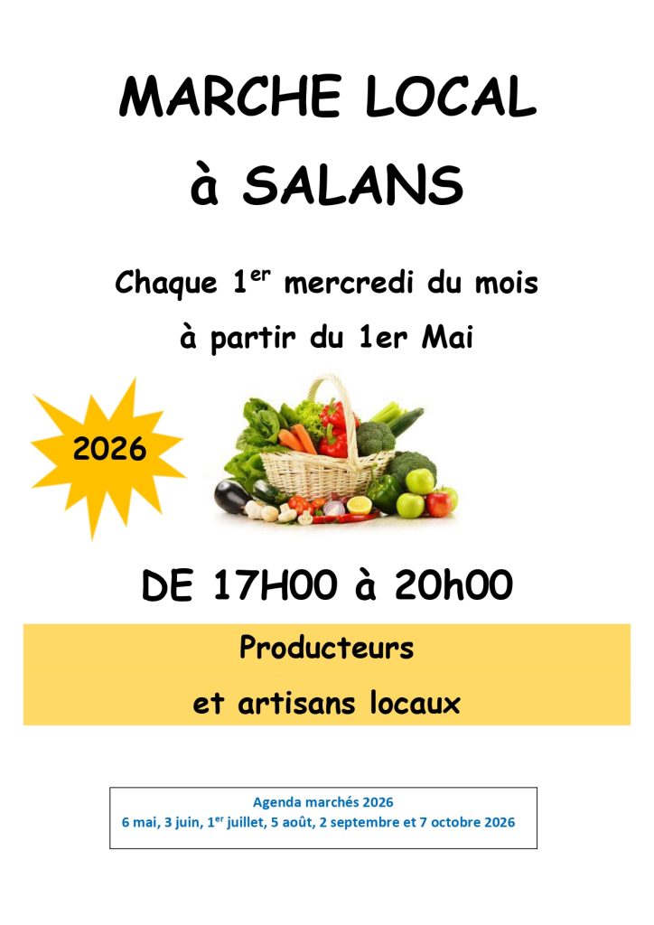 Le vide grenier de la gym de Salans aura lieu le 19 avril 2026. Vous pouvez dès à présent vous inscrire pour réserver votre emplacement indiquant la longueur souhaitée. Le tarif est de 3E le mètre linéaire tél : 06 82 19 39 70